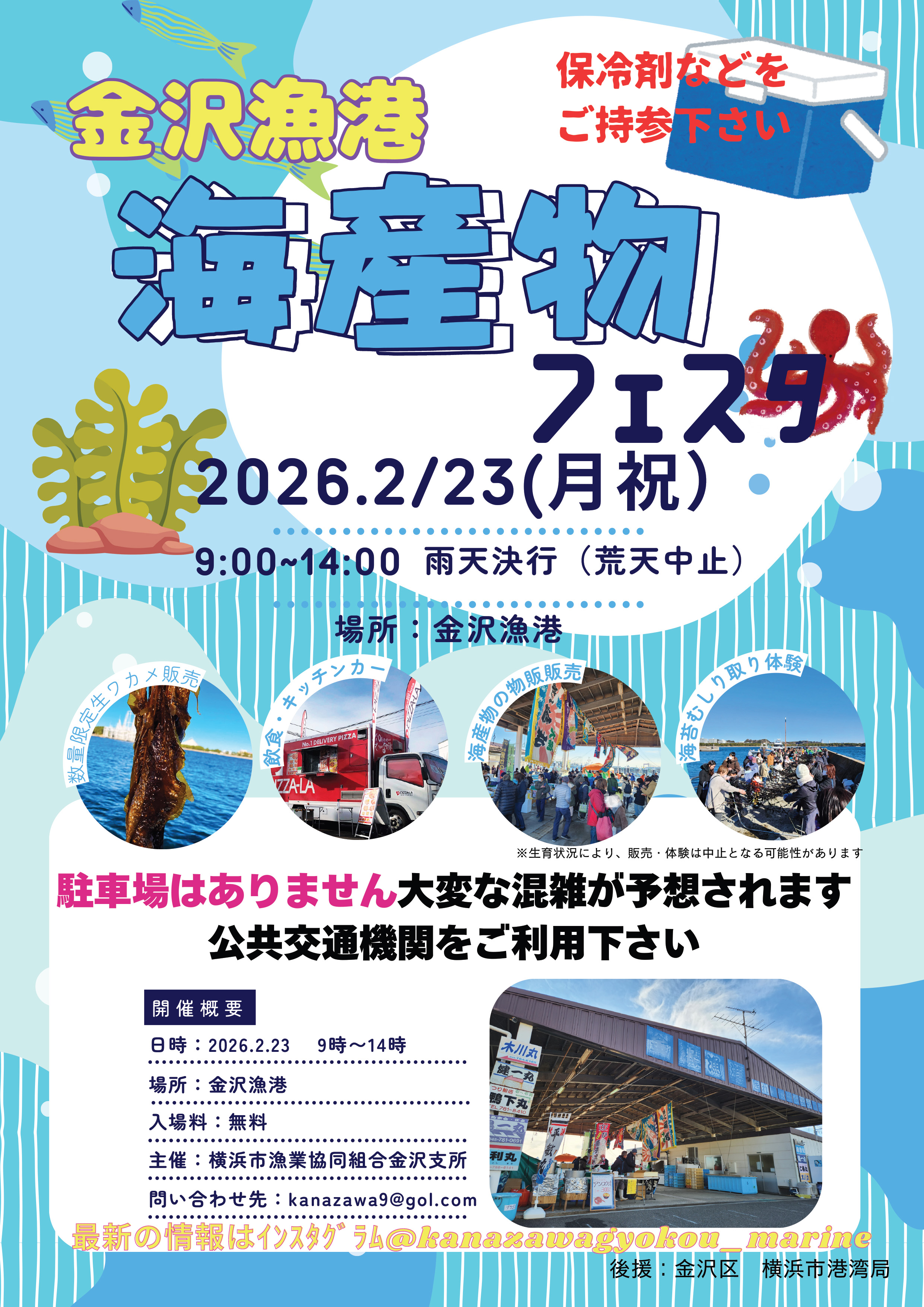 問合せ :横浜市漁業協同組合 金沢支所 kanazawa9@gol.com
